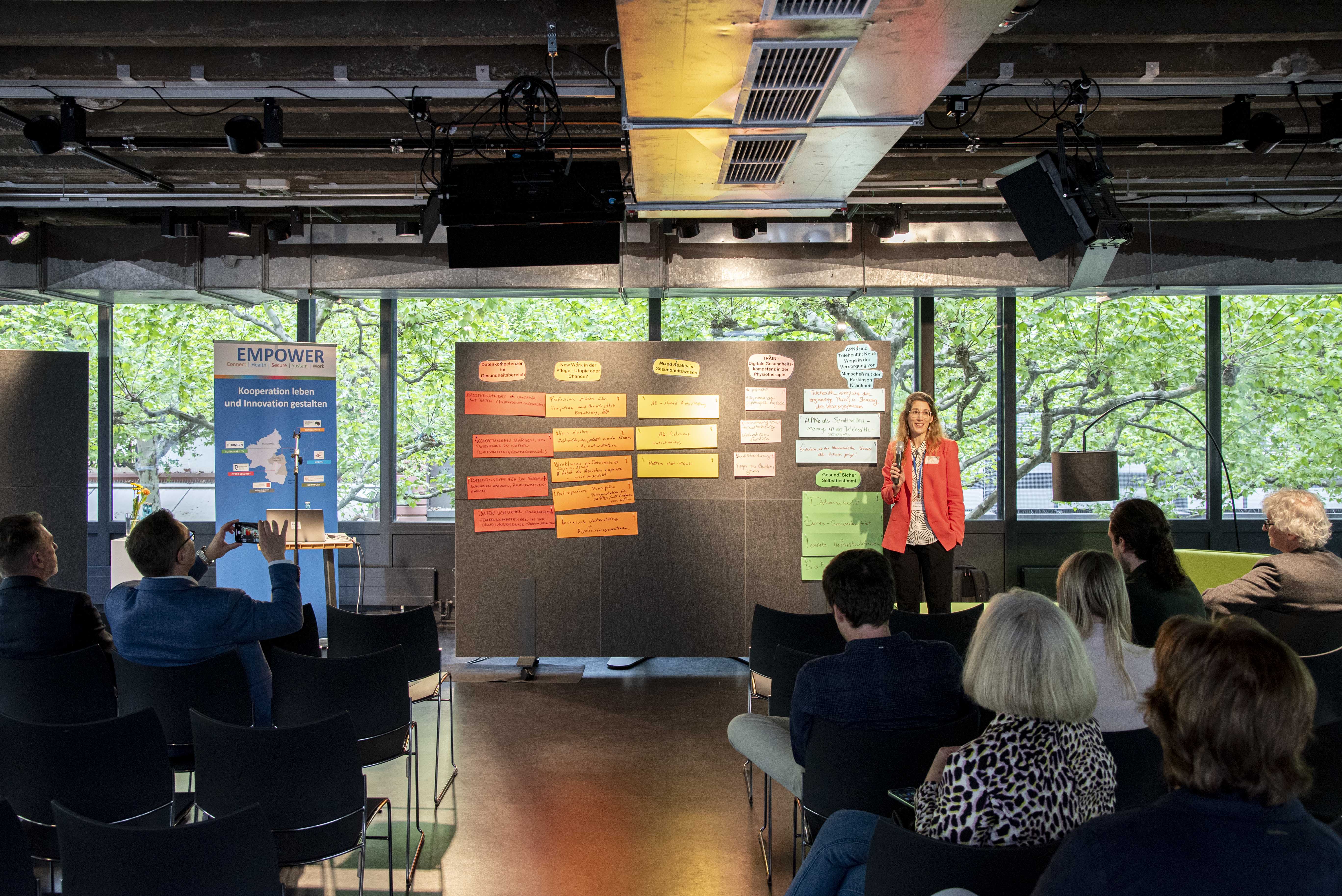 Zur Vernetzung des Fachpublikums trug vor allem auch die World Café-Session bei, die zwischen den Vorträgen anberaumt war und bei der die Teilnehmenden ihre Erkenntnisse und Erfahrungen einbringen konnten und so miteinander ins Gespräch kamen. In zwei Durchläufen à 20 Minuten standen die folgenden, moderierten Module zur Wahl: